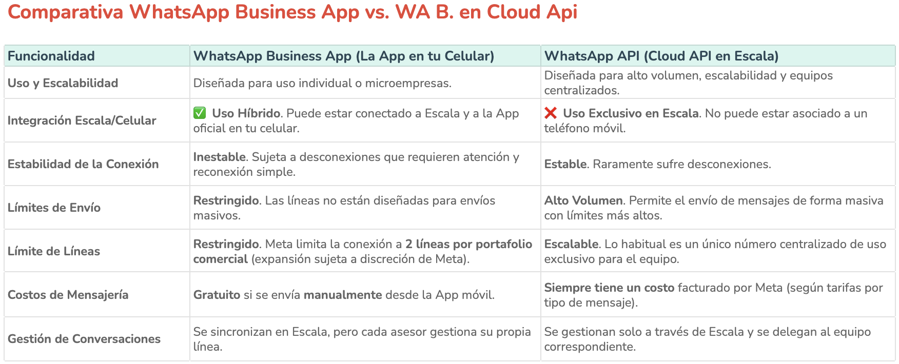 - Puedes leer más en nuestro artículo: Qué cambia en tu WhatsApp Business App al conectarla a Escala (Cloud API)