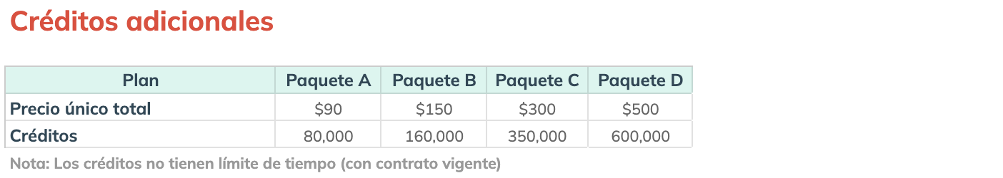 - Se consumen después de agotar los créditos de tu plan mensual.