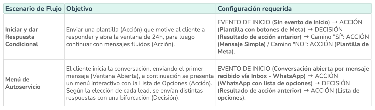 Es esencial configurar un evento de inicio adecuado, por ejemplo Conversaci贸n abierta por mensaje recibido v铆a Inbox, si quieres automatizar una interacci贸n a partir del mensaje del lead o cliente, o Sin evento de inicio, si buscas enviar plantillas a un segmento de contactos desde tu CRM. Puedes automatizar distintos flujos de comunicaci贸n seg煤n tu estrategia.