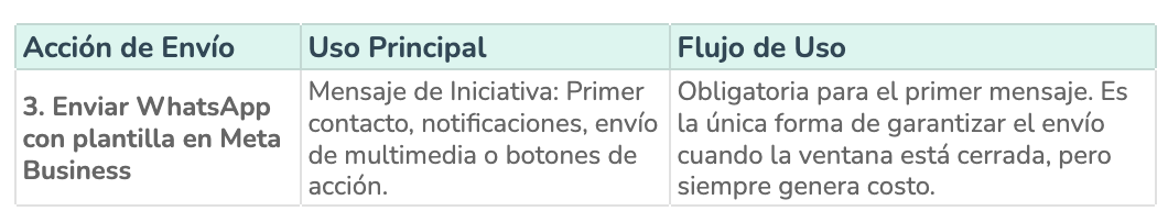Importante sobre la reputaci贸n: El env铆o de plantillas (incluso con la ventana cerrada) puede generar bloqueos o da帽ar la reputaci贸n de tu cuenta de WhatsApp en Meta.Clasificaci贸n de mensajes y sus m茅todos de env铆o en Escala